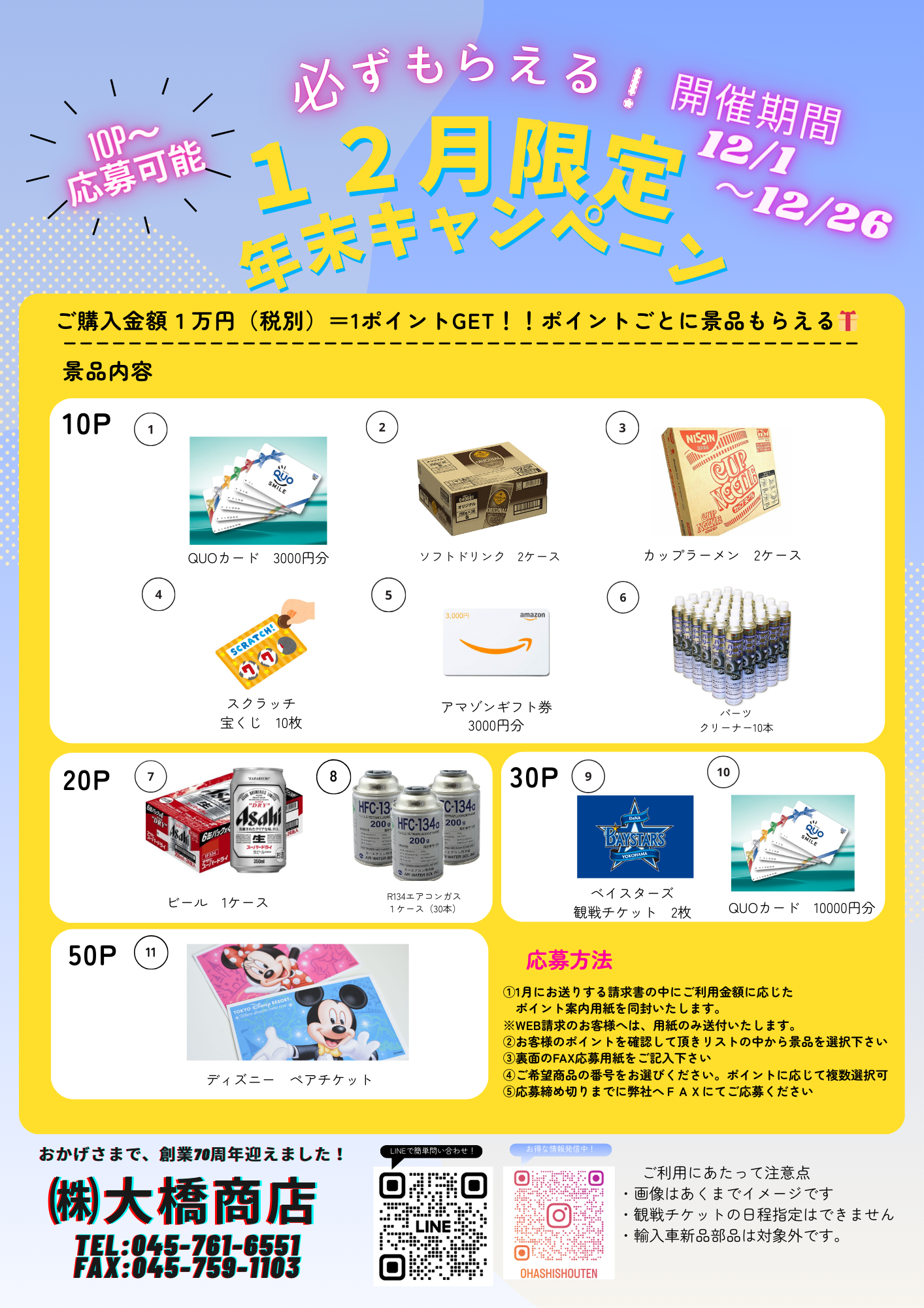 年末キャンペーンのお知らせ及び締め切り日訂正のお詫び